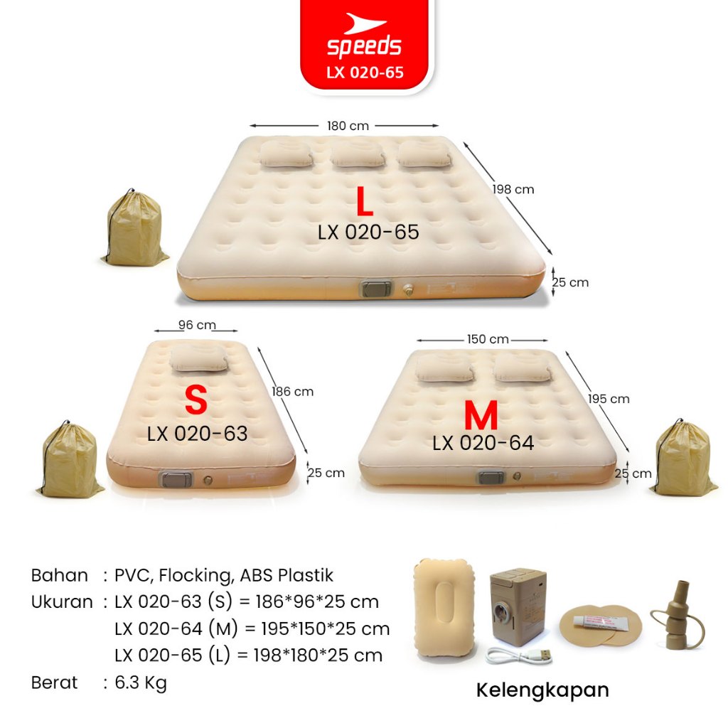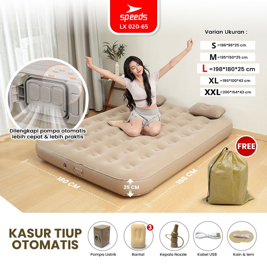 SPEEDS Kasur Angin Tiup 200x154x43cm Multifungsi Camping Rumahan Matras Kasur Pompa Outdoor Inflatable Bed 020-65