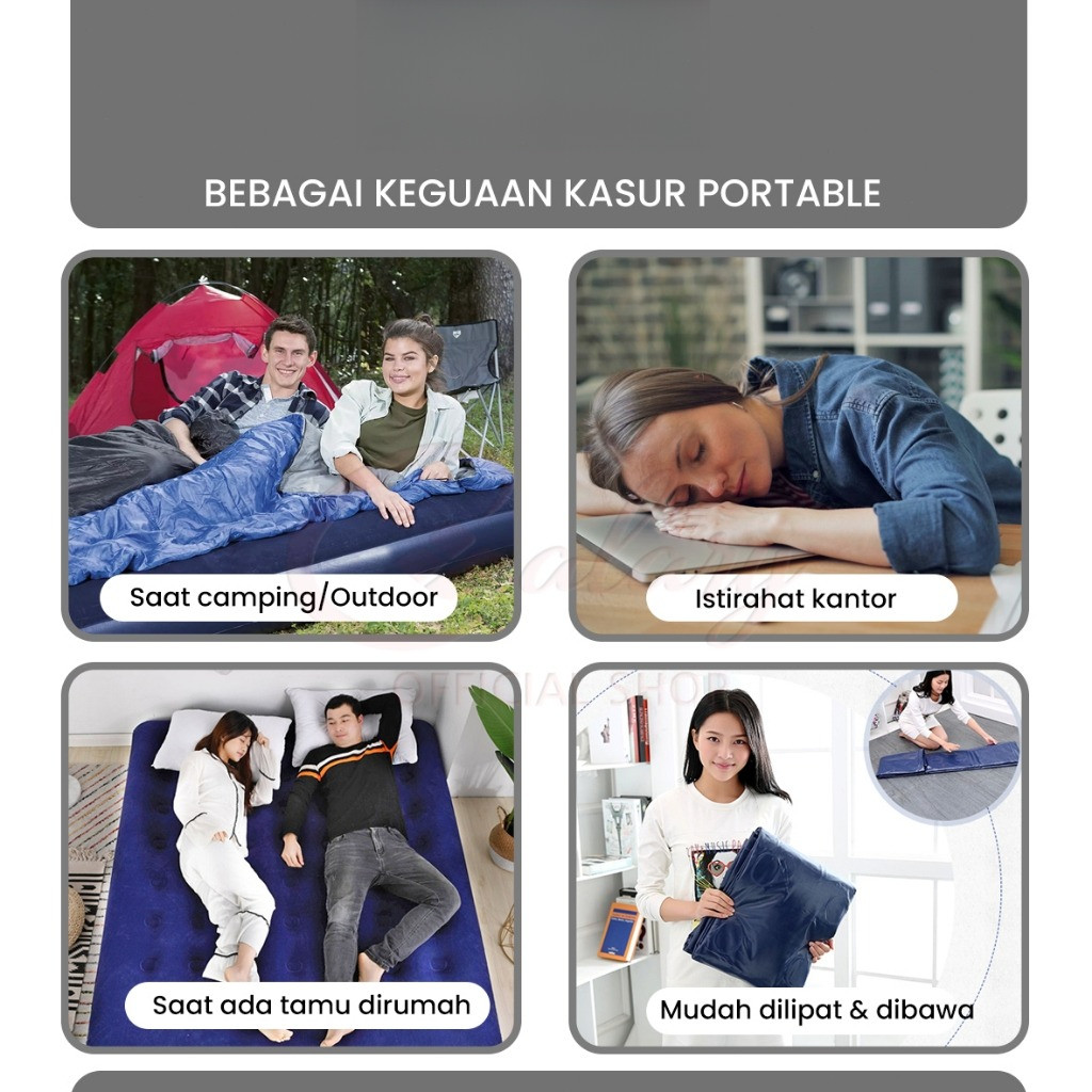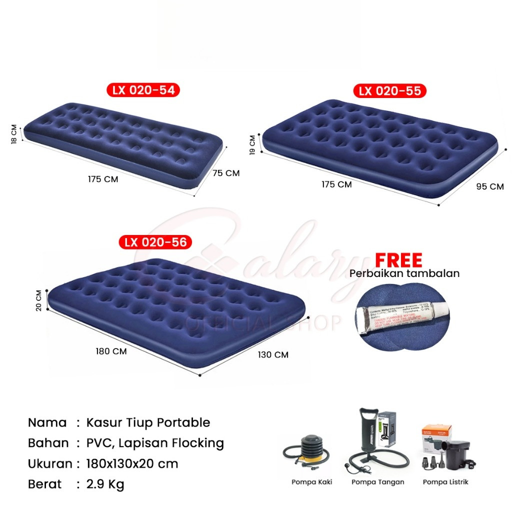 BECKY Kasur Angin Matras Angin Tiup Lipat Sleeping Pad Single Double Waterproof Air Bed Outdoor Indoor 020-56
