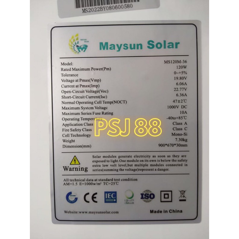 Solar Panel Mono Maysun Solar 120WP + PACKING KAYU