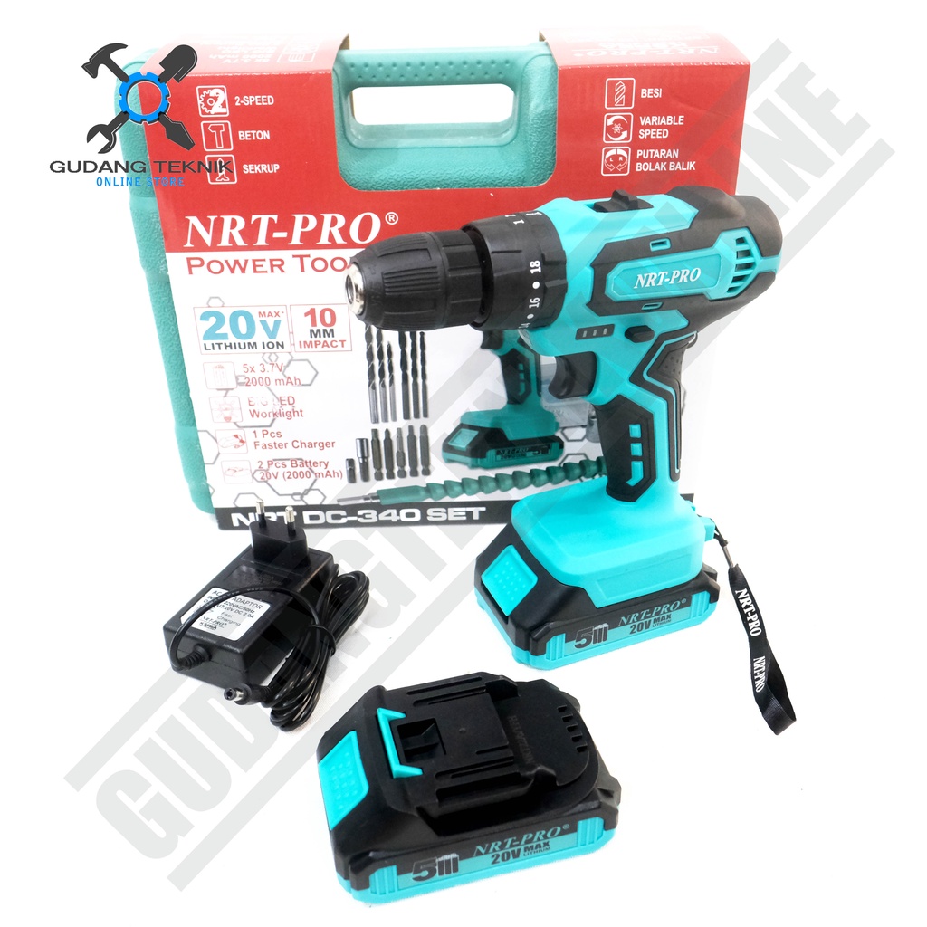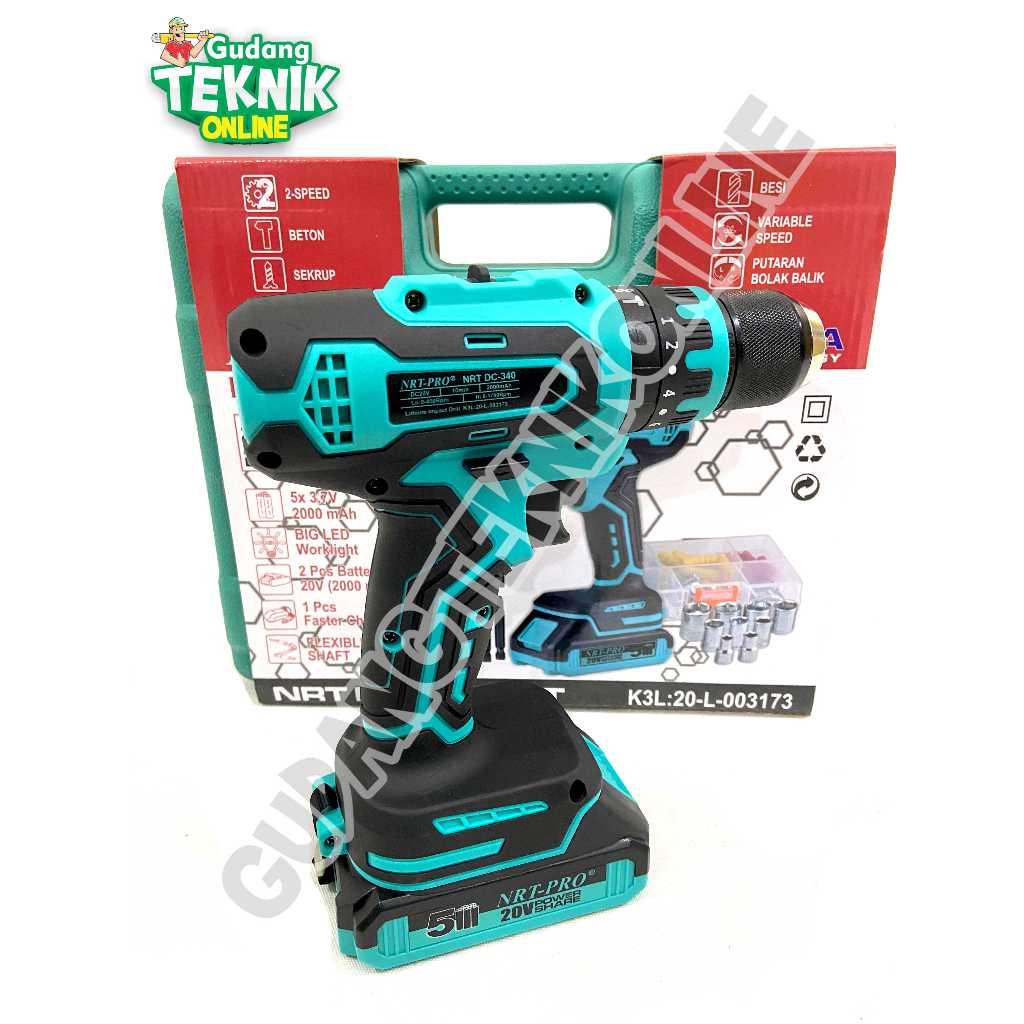 MESIN BOR TANGAN NRT PRO 340SET Cordless Drill NRT PRO DC 340 SET Bor Baterai Impact Drill 20V Bor Tembok Beton Set Akse