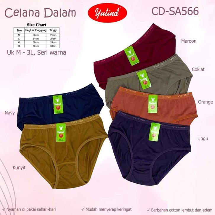 1 Paket Isi 6pcs Cd Yutind SA 566 Bahan Katun / Celana Dalam Wanita Murah Lembut M-XXL