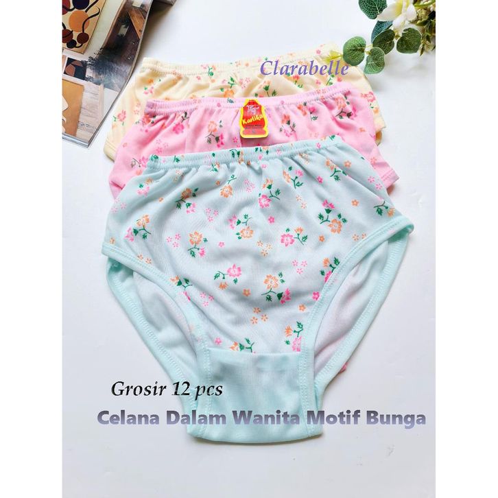 Celana Dalam 12 pcs / CD Wanita Motif Bunga Kartika
