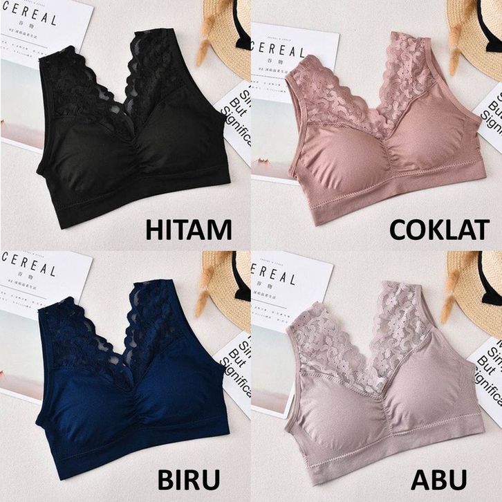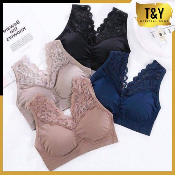 T&Y Bra Wanita V Neck Brukat Tanpa Kawat Kode B9 Bh Sport Wanita Tanpa Kawat