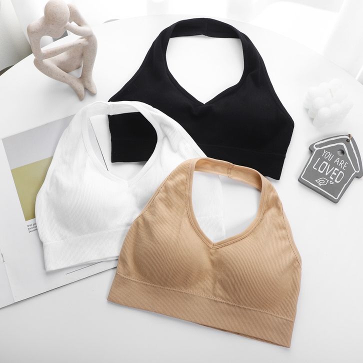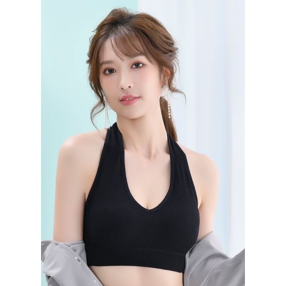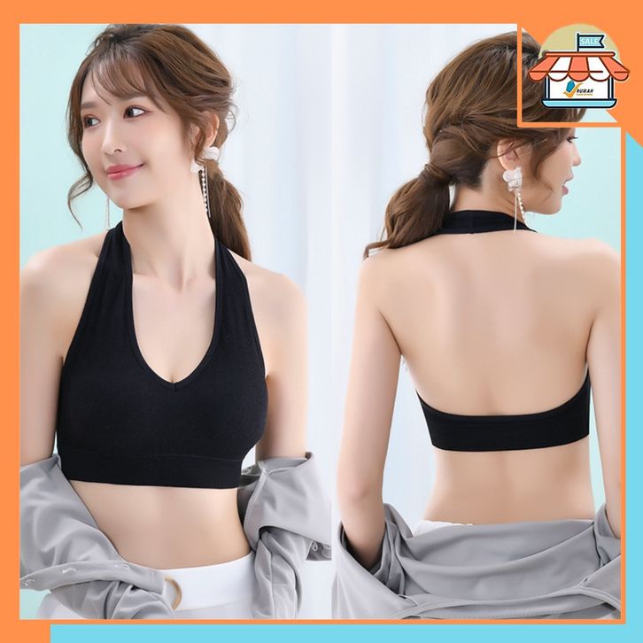RSB BR272 BRA Bh Wanita Atasan V-neck Seksi Leher Tali Ikat Gantung Crop Top Bra Sport Tanpa Kawat