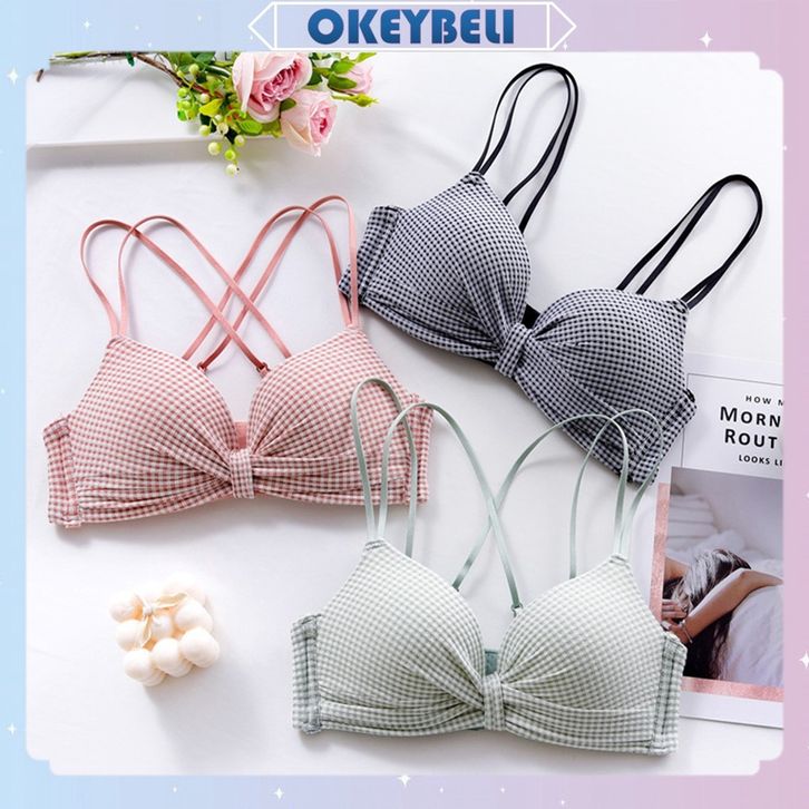 OKEY BELIBR446 Bra Bh Wanita Push Up Seksi Seamless y Cup Tanpa Kawat Tali Adjust Motif Pita