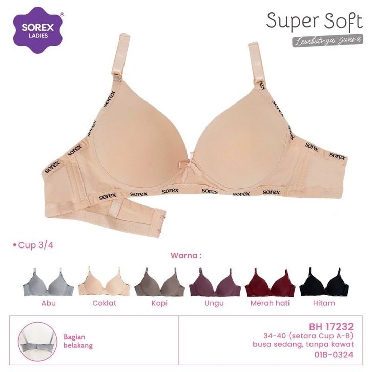 Bra Sorex 17232 Tanpa Kawat Super Soft Busa Tipis Cup B kecil Kait 2