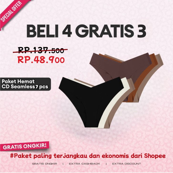 SHASHALADY Isi 7pcs CELANA DALAM SEAMLESS V SHAPE UNDER WEAR WIRELESS TIPIS CD TANPA JAHITAN SIZE