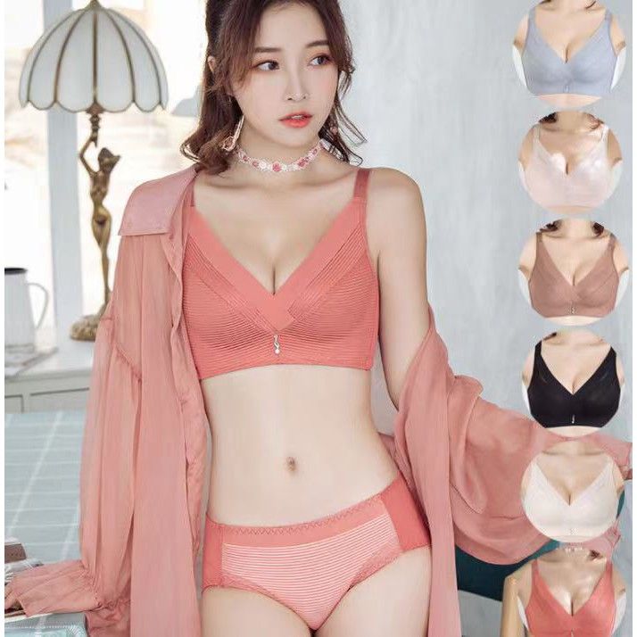 Bra Wanita Push-Up Isi Busa Tali Strap dan Bahan Lace Breathae Hiasan Bordir