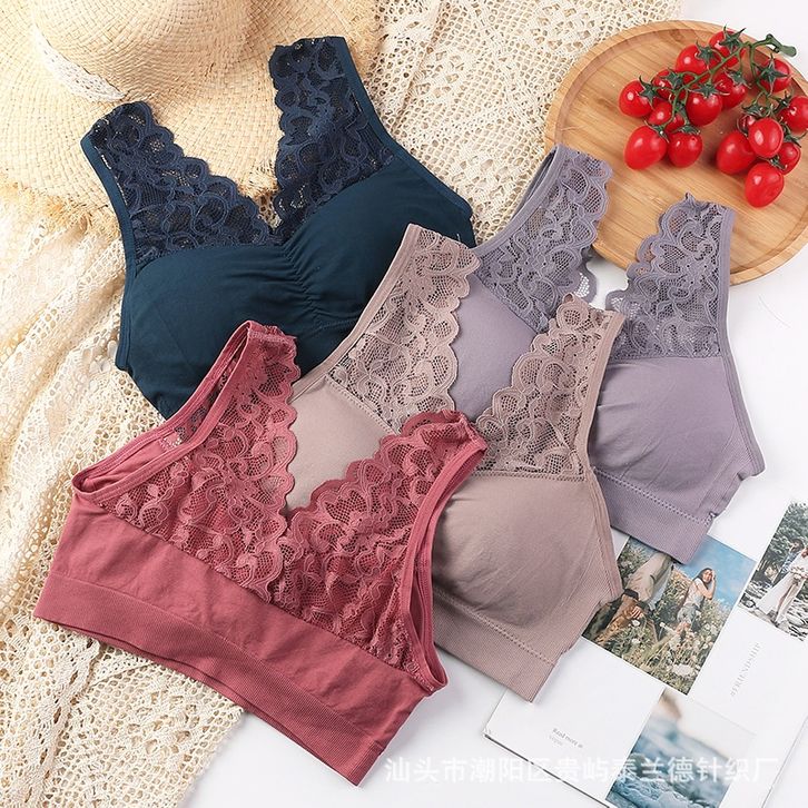 GUMMY BR26 Bra Wanita V Neck Brukat Tanpa Kawat Bh tali burkat Sport Wanita Import