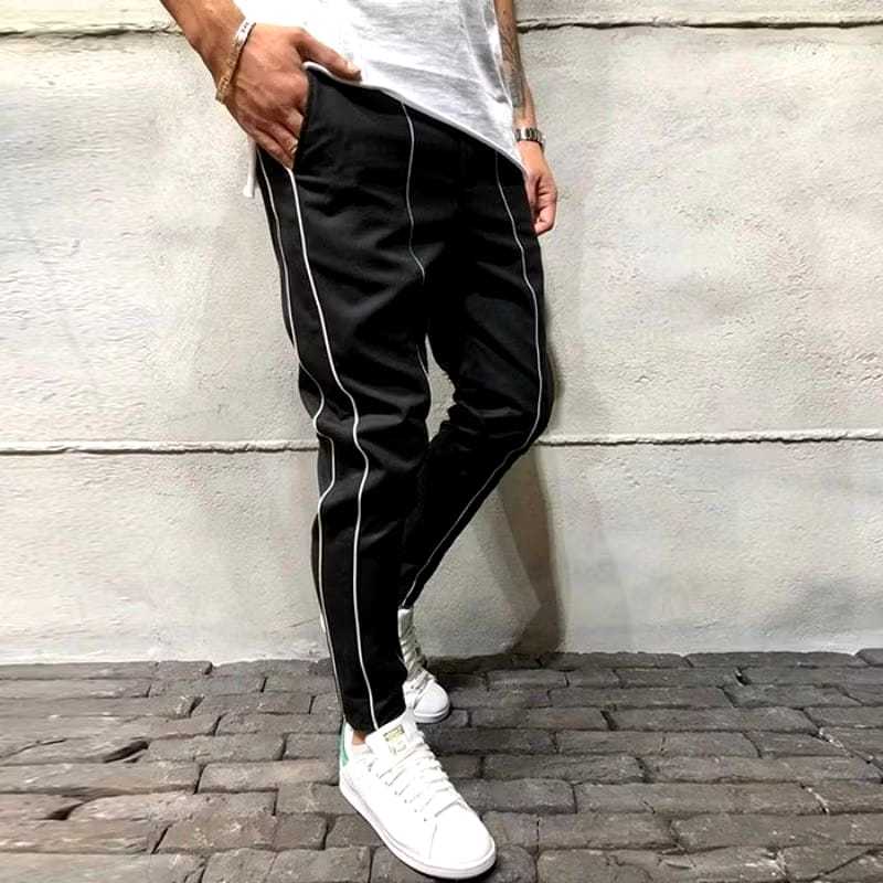 VCRL Celana Pria Hypebeast Hitam List Putih Simple Bahan Scuba Streach Premium Slim Fit Korean Style