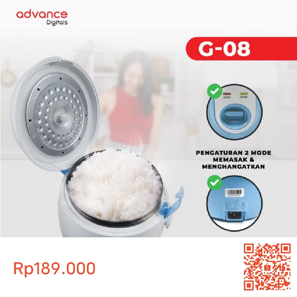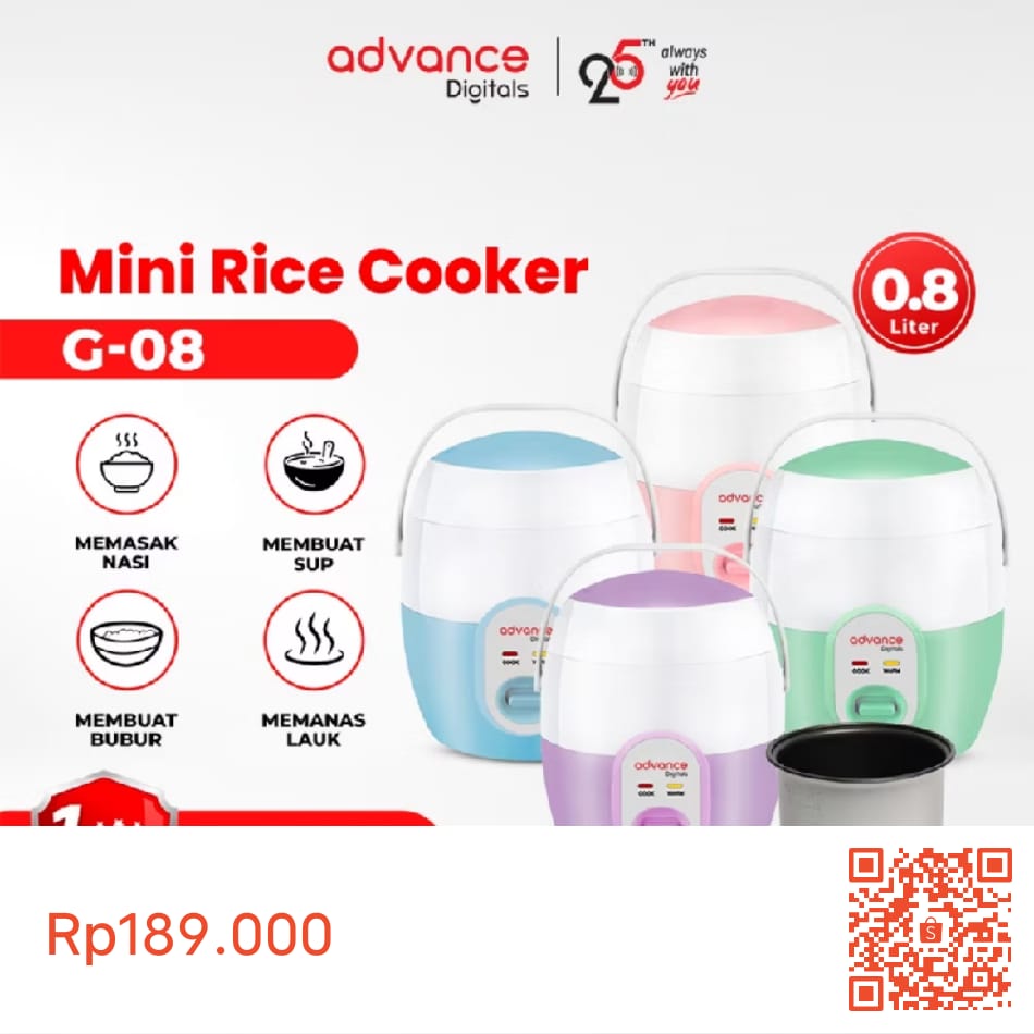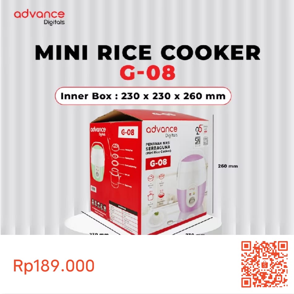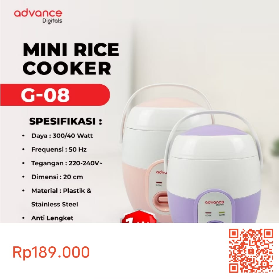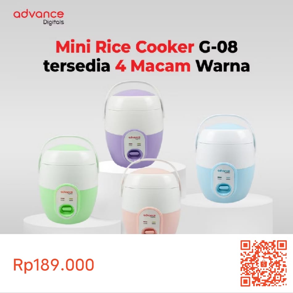 Advance G-08 Rice Cooker Travel 1 Liter Anti Lengket 300 Watt Garansi Resmi 1 Tahun