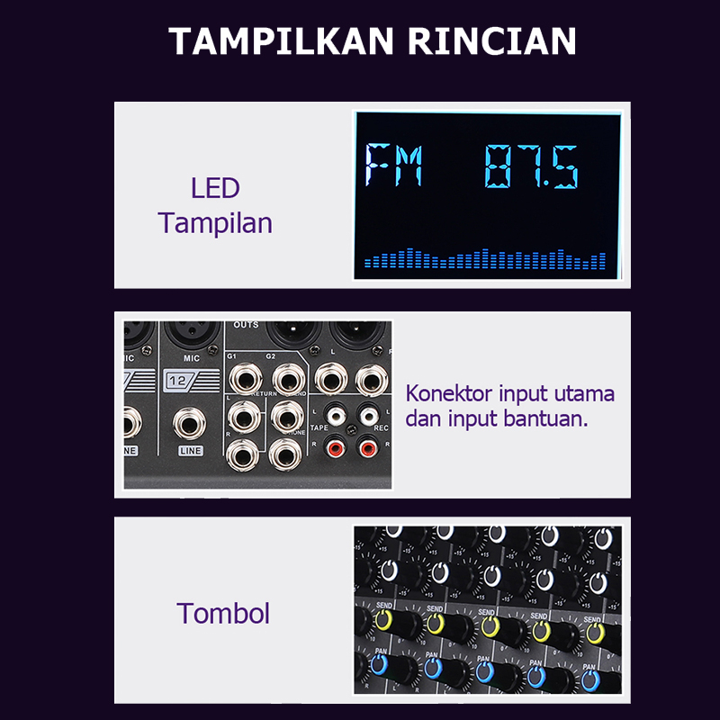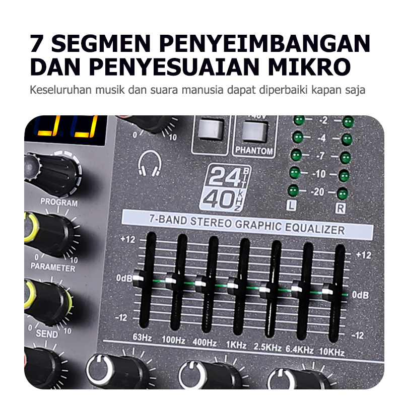 mixer audio,mixer karaoke,pencampur audio,built-in 7-band EQ,bawaan Memiliki phantom power 48v,USB/SD/Bluetooth GM80S/GM