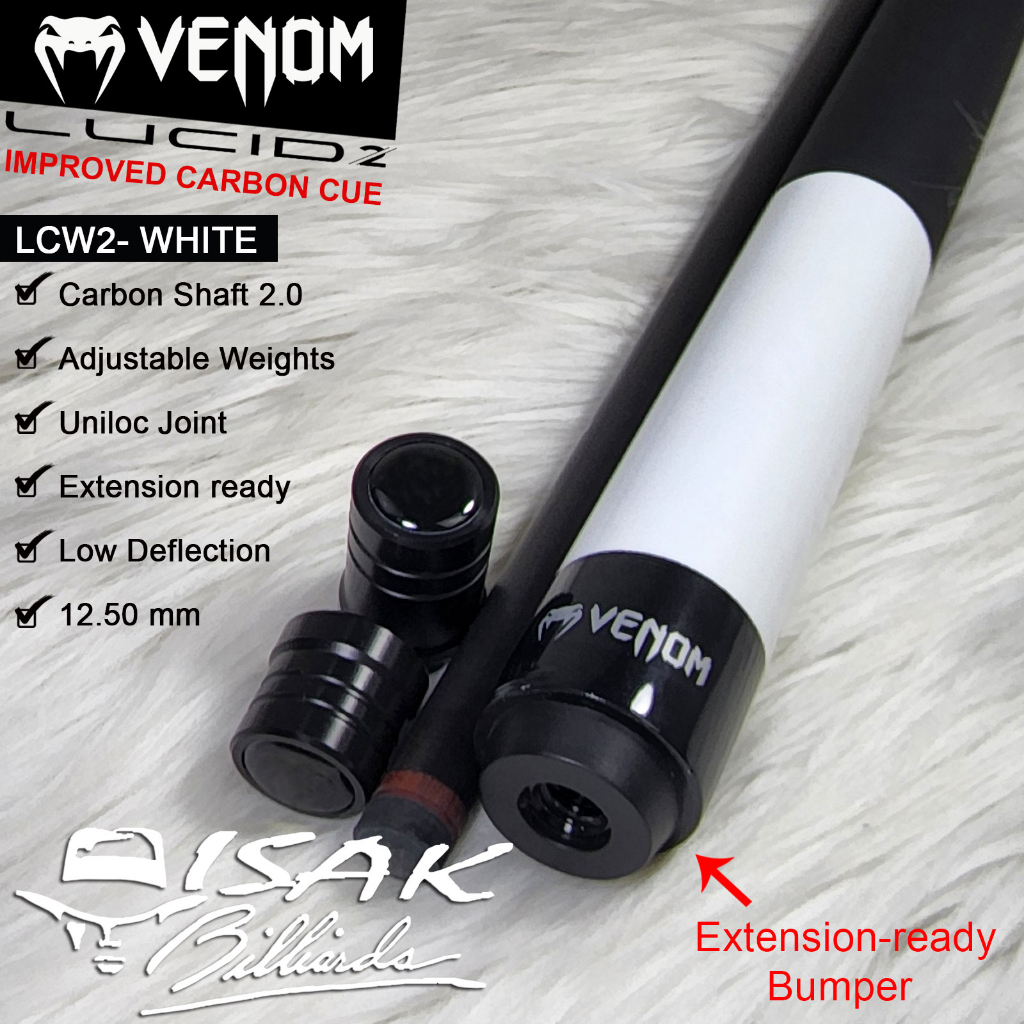 Venom Lucid Carbon LCW White Cue - Uniloc Extension Bumper Stick Billiard