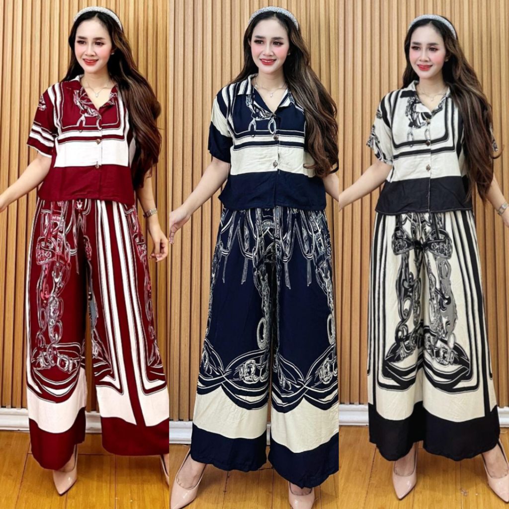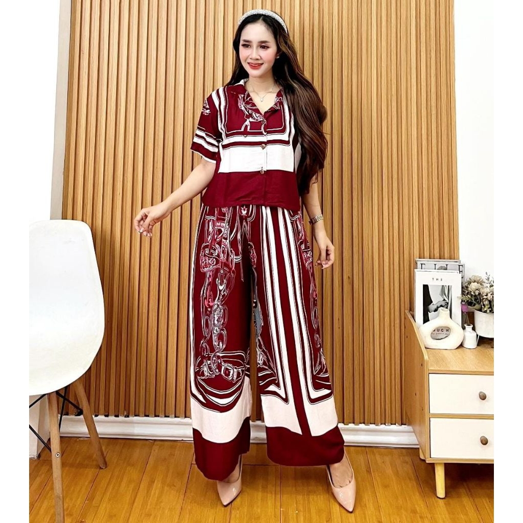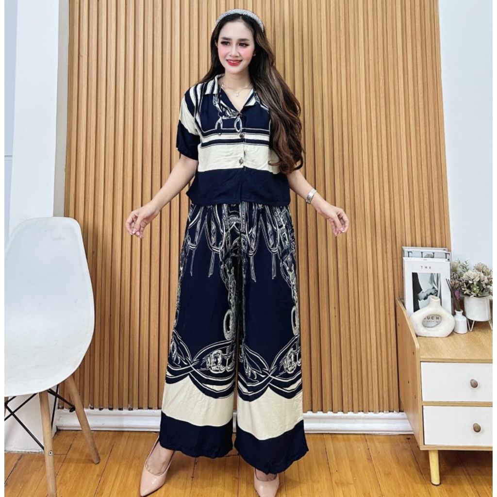 Stelan Wanita Kekinian I Stelan Crop Celana Kulot Highwist