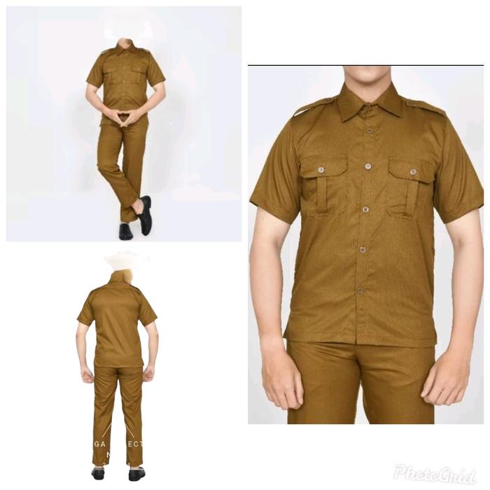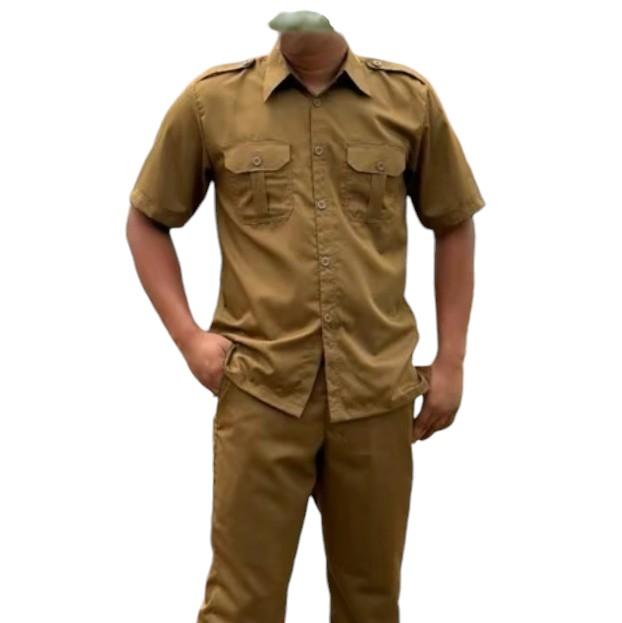 Seragam Pns Pemda Pemkot Guru Pria Khaki Muda Baju Dan Celana Panjang Katun Coklat Wearpack Sekolah Safety Setelan Semiw