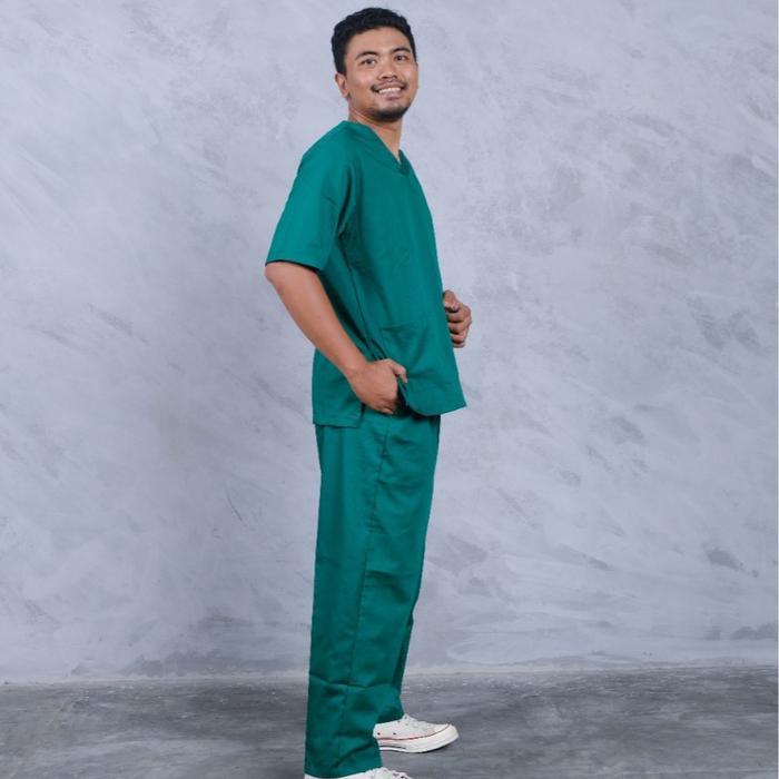 Baju Ok Oka Lengan Pendek American Drill Full Set Atasan Celana Panjang - Hijau Botol, S