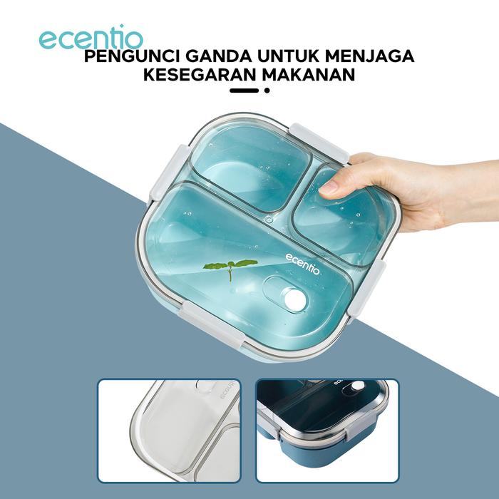 Ecentio 1100Ml Kotak Makan Free Sendok Lunch Box Tas Bekal Set