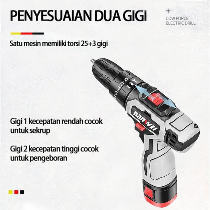 42V Mesin Bor Cordless/Bor Baterai/ Bor Listrik/Impact Drill Bor Beton - Kecepatan Ganda, Satu Baterai