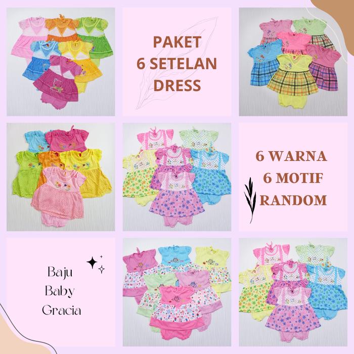 Paket Isi 6 Pcs Setelan Bayi 0-12 Bulan Baju Anak Perempuan Set Anak Baju Baby Gracia Parsel - Random