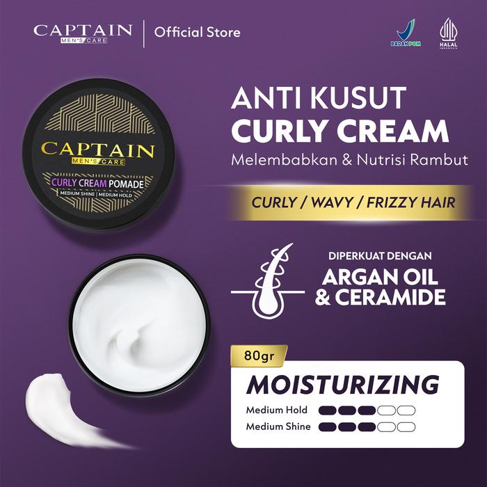 Captain Men'S Care Curly Cream Pomade 80Gr / Pomade Pria / Medium Hold / Medium Shine / Moisturizing / Melembabkan Rambu