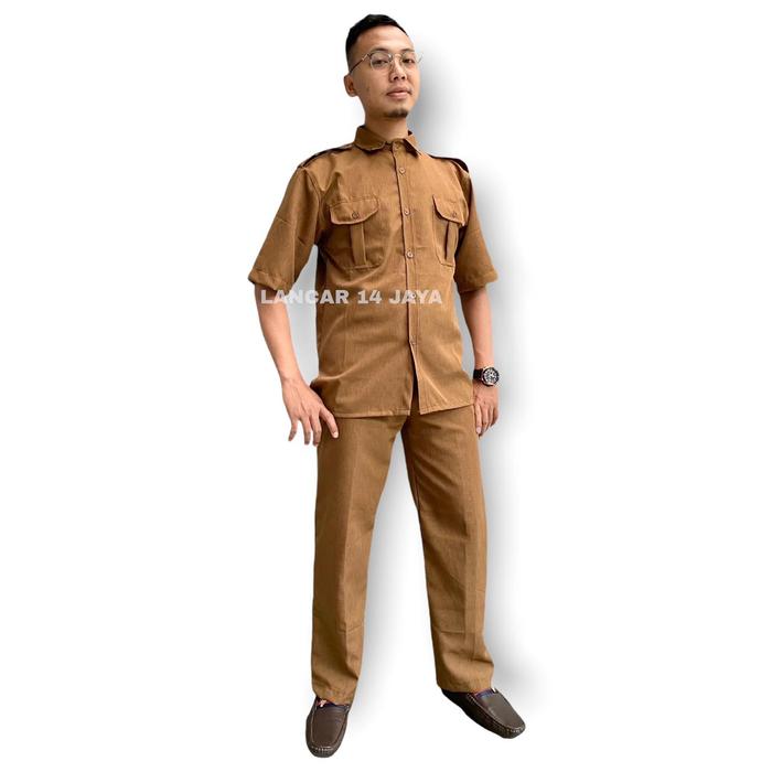 Lancar Jaya Seragam Pns Seragam Pemda Pria Khaki Tua Baju Pdh Pegawai Negeri Dinas Pemerintah Baju Guru - Coklat Tua, Xl