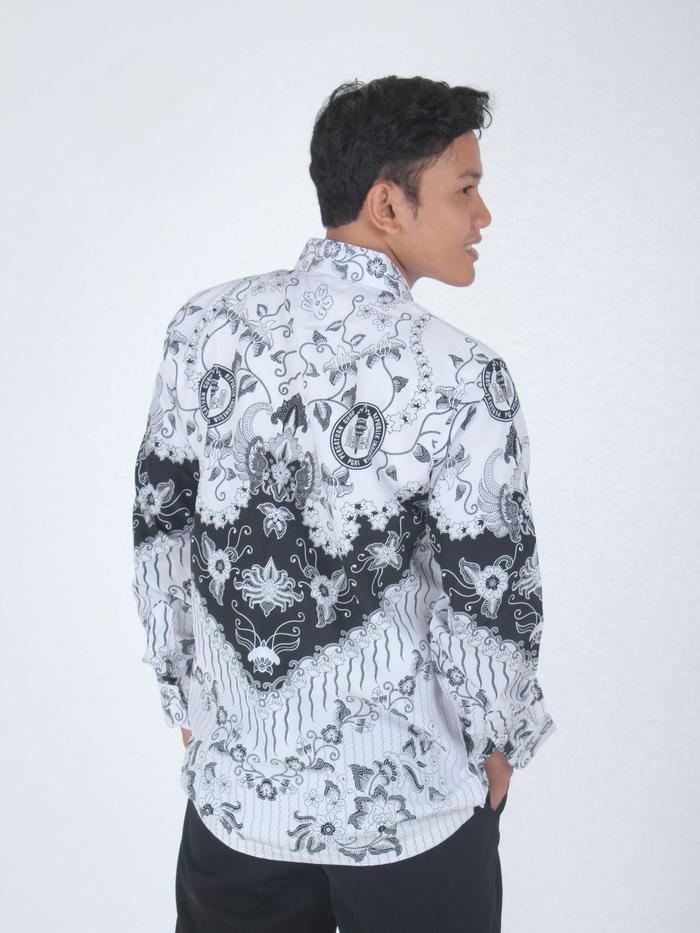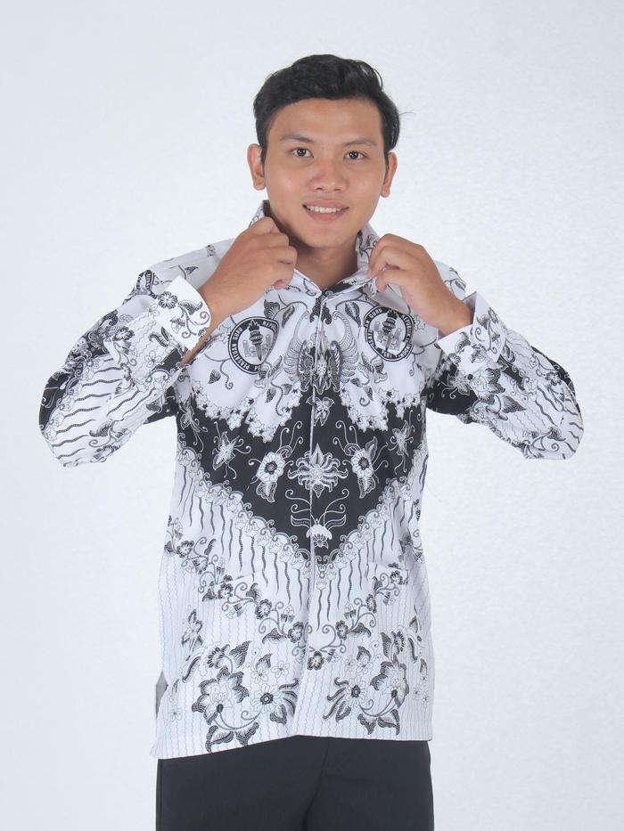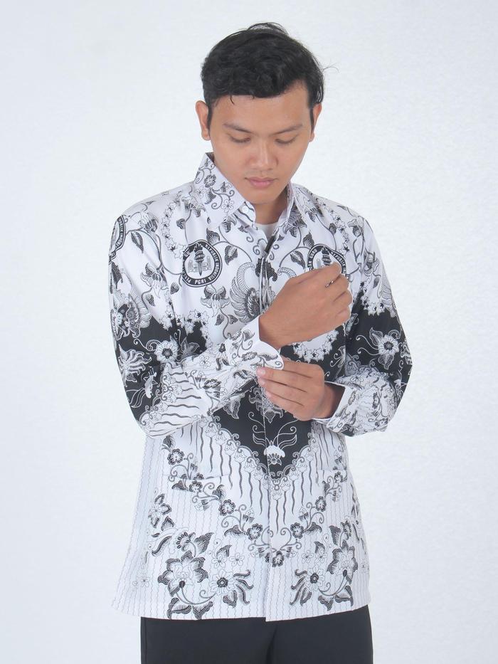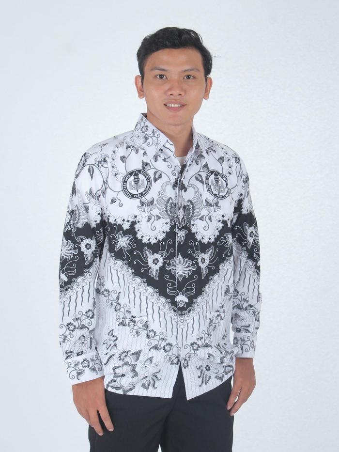 Baju Pgri Pria Full Furing Hitam Putih Lengan Panjang Bagus Halus Seragam Katun Atasan Guru Batik Hitam Putih - S, Asti