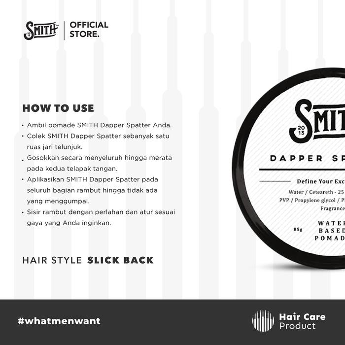 Smith - Dapper Spatter Hair Pomade Water Based 85Gr / Minyak Rambut Pria / Scent Lemon