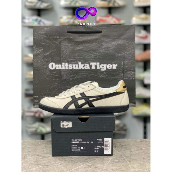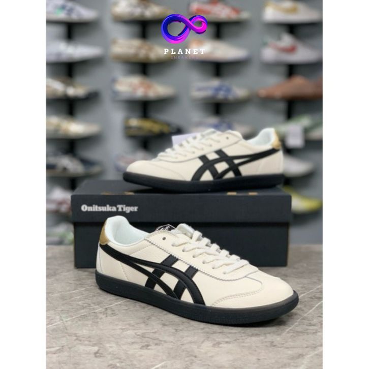 Sepatu Onitsuka Cream Black White Gold Terbaru Sneakers Pria dan Wanita 100% Premium