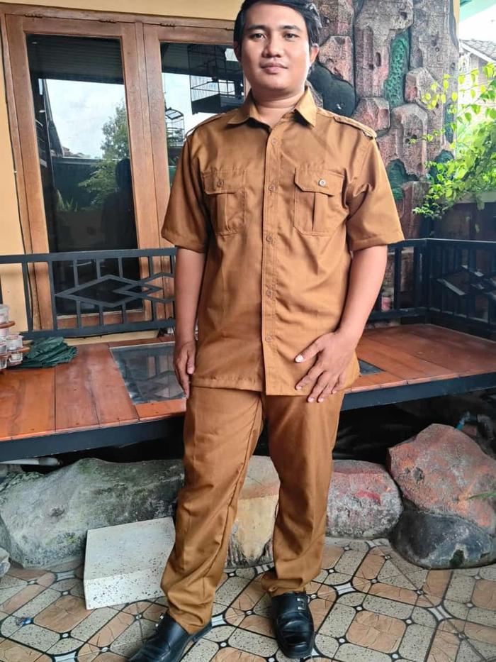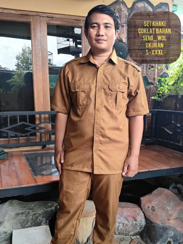 Satu Set Baju Khaki Coklat Pria Lengan Pendek /Seragam Pns Pria Lengan Panjang / Baju Dinas Pemda / Baju Pdh Coklat Pria