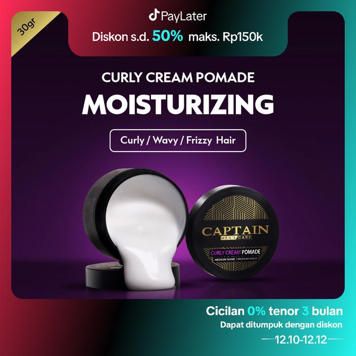 Captain Men'S Care Curly Cream Pomade 30Gr / Pomade Pria / Medium Hold / Medium Shine / Moisturizing / Melembabkan Rambu