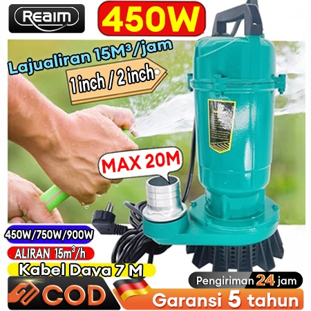 Reaim Pompa Celup 450W Air Kotor Bersih 1 inch/2inch Submersible Pump Pompa Kolam Ikan/Banjir 5000L/H Daya Hisap Tinggi