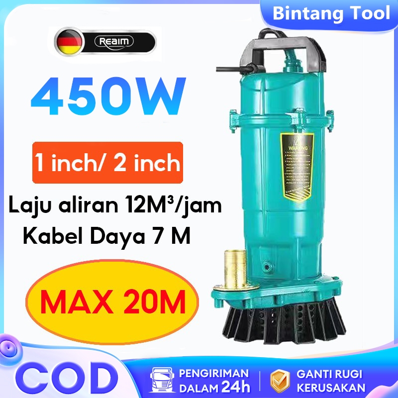 Reaim 450W 1 inch/2inch Submersible Pump Pompa Celup Air Kotor Otomatis Mesin Pompa Air