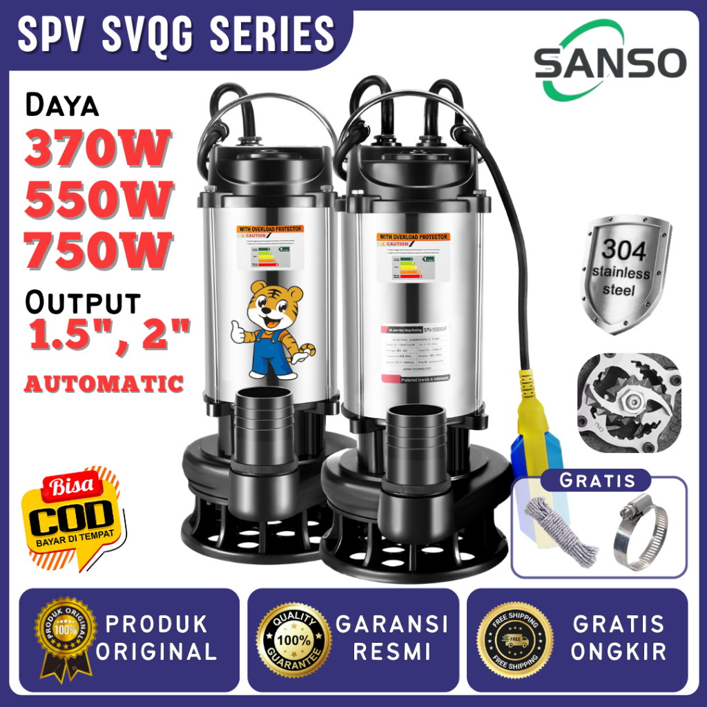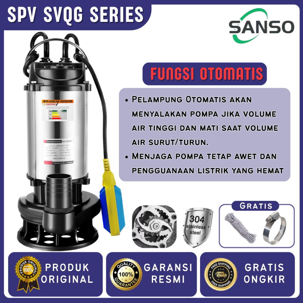 Sanso Mesin Pompa Air Bersih Kotor Kolam Sawah Limbah Pabrik Mata Pisau SPV-SVQG/F Otomatis Manual