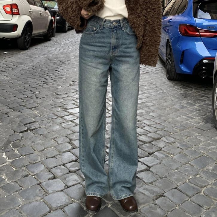 【Premium】Women Pants Wide Leg High Waist Baggy Jeans 3709 (Size: 26-30)