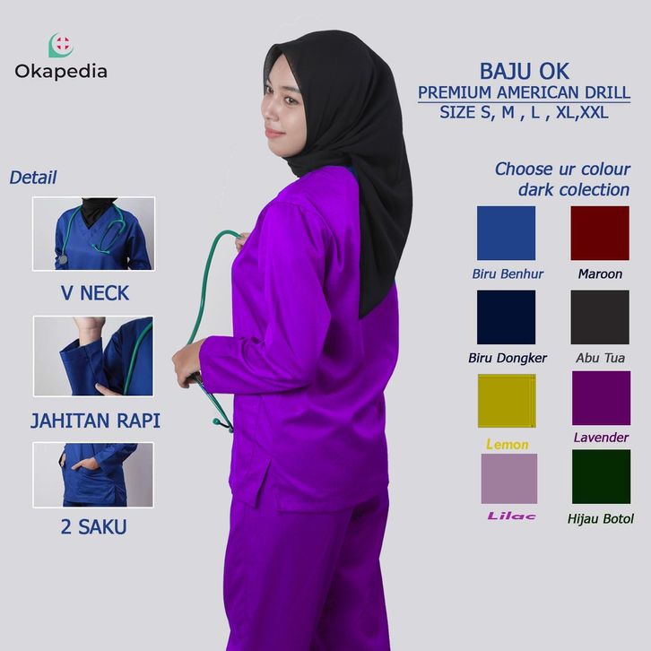 TERMURAH baju jaga Dokter Scrub medis Perawat OK oka lengan panjang American Drill ogesk