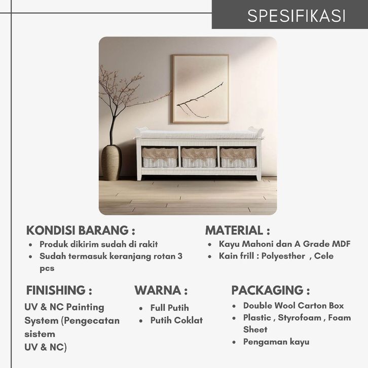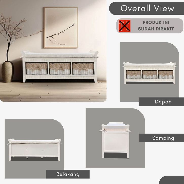 Toraya Bangku Kayu Panjang/ Bangku Laci Rotan/Bench/ Jasmine Series Bench Chair