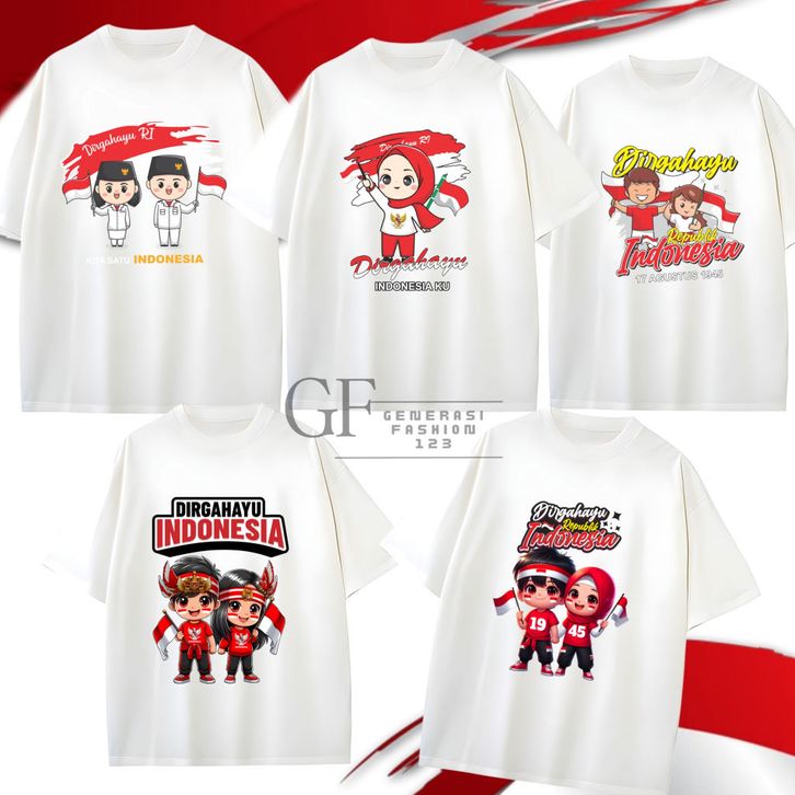 Gf123/ 16 Motif T-Shirt Putih Dewasa Unisex Cowok Cewek Combed 24S Tema 17 Agustus 2025 Hut Ri 80