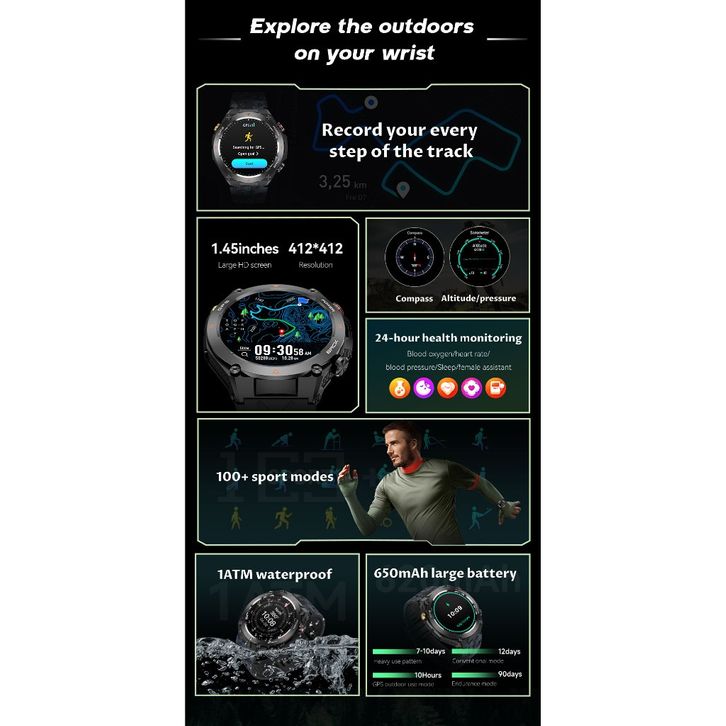 HUAWEI Smart Watch KC82 | Built-in GPS | Jam Tangan Pintar | Tahan Air 1ATM | Jam Tangan Militer | Ketinggian/Tekanan Ud
