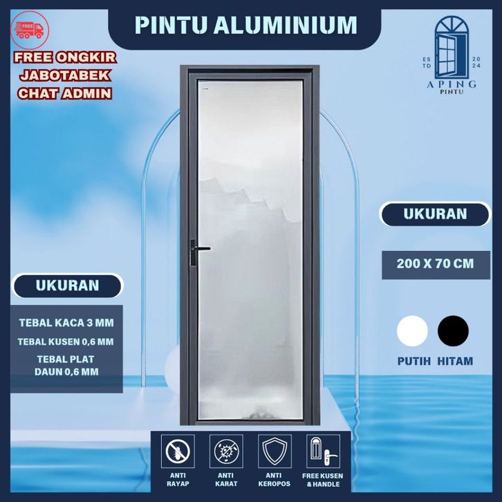Pintu Aluminum Kaca, Pintu Kamar Mandi, Pintu Aluminium, Pintu Toilet, Pintu Indoor 200*70 Hitam