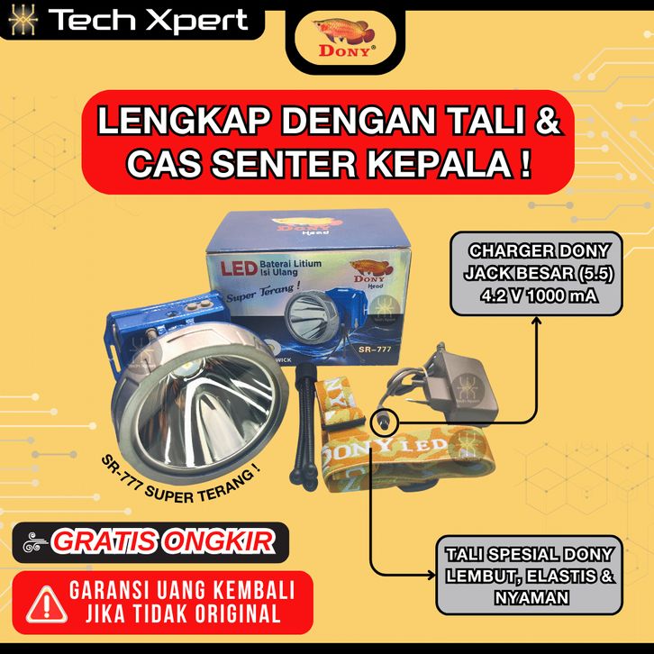 Senter Kepala Led Dony 60 WATT SR-777 "SUPER TERANG" Ori Premium Anti Air Free Tripod Ukuran Jumbo