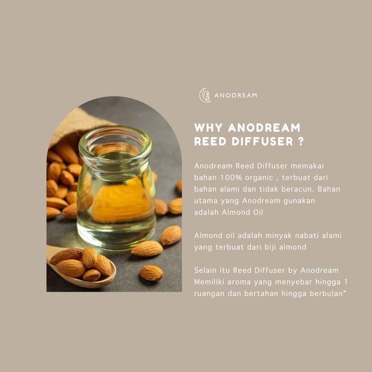 MURAH TERLARIS Anodream Aromatherapy Reed Diffuser Almond Oil | Tahan hingga 3 bulan | Organic | Pengharum