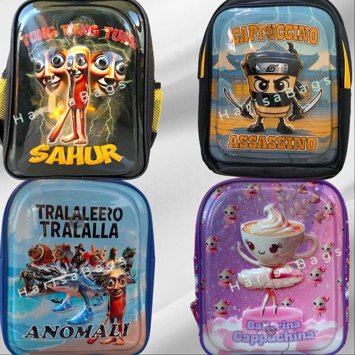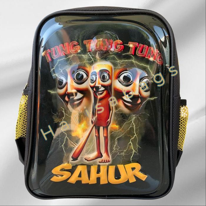Tas Ransel Anomali Tas Tungtung Sahur Tas Anak Sd Tk Paud Tas Led 3D Timbul Fashion - Tungtung Hitam Led, Sd(6Thn Keatas