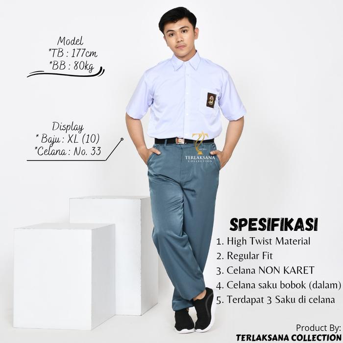 Setelan Seragam Sma Smk Lengan Pendek Seragam Sekolah Kualitas Premium Baju Putih Celana Panjang Abu - Postur Tubuh S