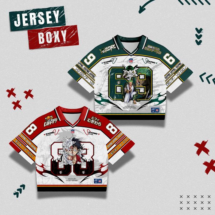 Jersey Boxy Op V2 Series Unisex-Bahan Dryfit Uv Premium Motif Luffy & Zoro Seri Favorit Fs - Luffy Red 88, S