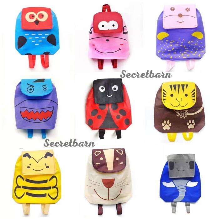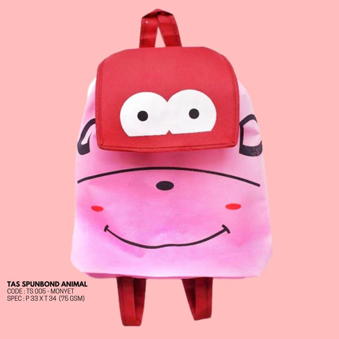 Tas Spunbond Ultah Isi 12 Ransel Anak Motif Binatang Goodie Bag Birthday Snack Souvenir Murah Parcel Fashion - Monyet