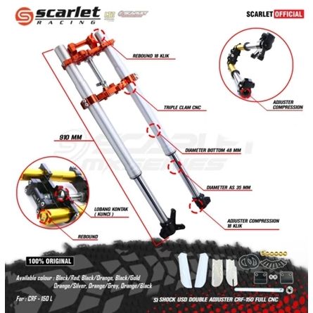 TERLAKU Sokbeker Shock Upside Down Depan USD SCARLET DOUBLE ADJUSTER CRF 150 FULL CNC ahics