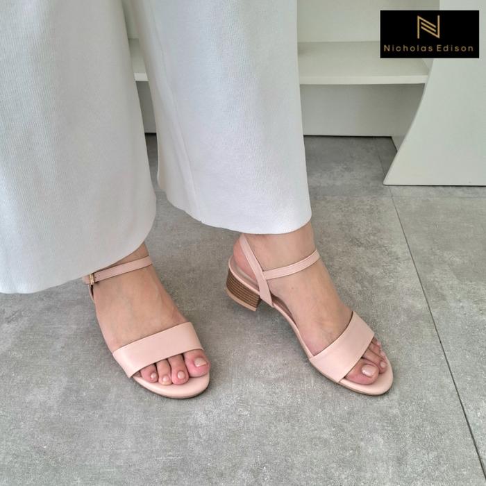 Nicholas Edison Heel Viensa Sandal Wanita Hak Tahu Tali Kait Best Seller Terbaru Peep Toe - Black, 36