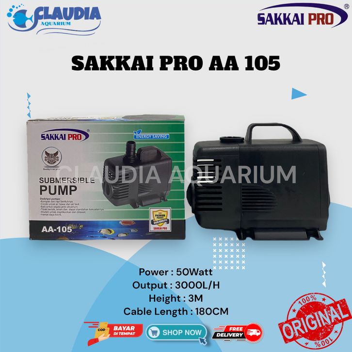 Pompa Celup Air Submersible Pump SAKKAI PRO AA 105 50 Watt Aquarium Kolam Hidroponik Murah 3000L/H 3 Meter