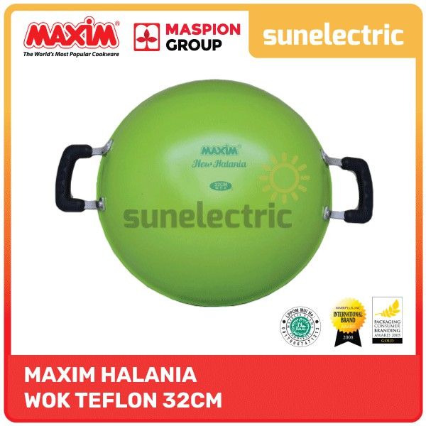 Maxim Halania Wajan Panci Penggorengan Teflon Anti Lengket Wok 32 cm - Hijau