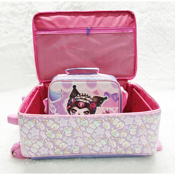 Set Koper Anak Dan Lunch Bag Set Tas Dorong Ringan Bahan Sponge Tahan Air - Krm Lilac